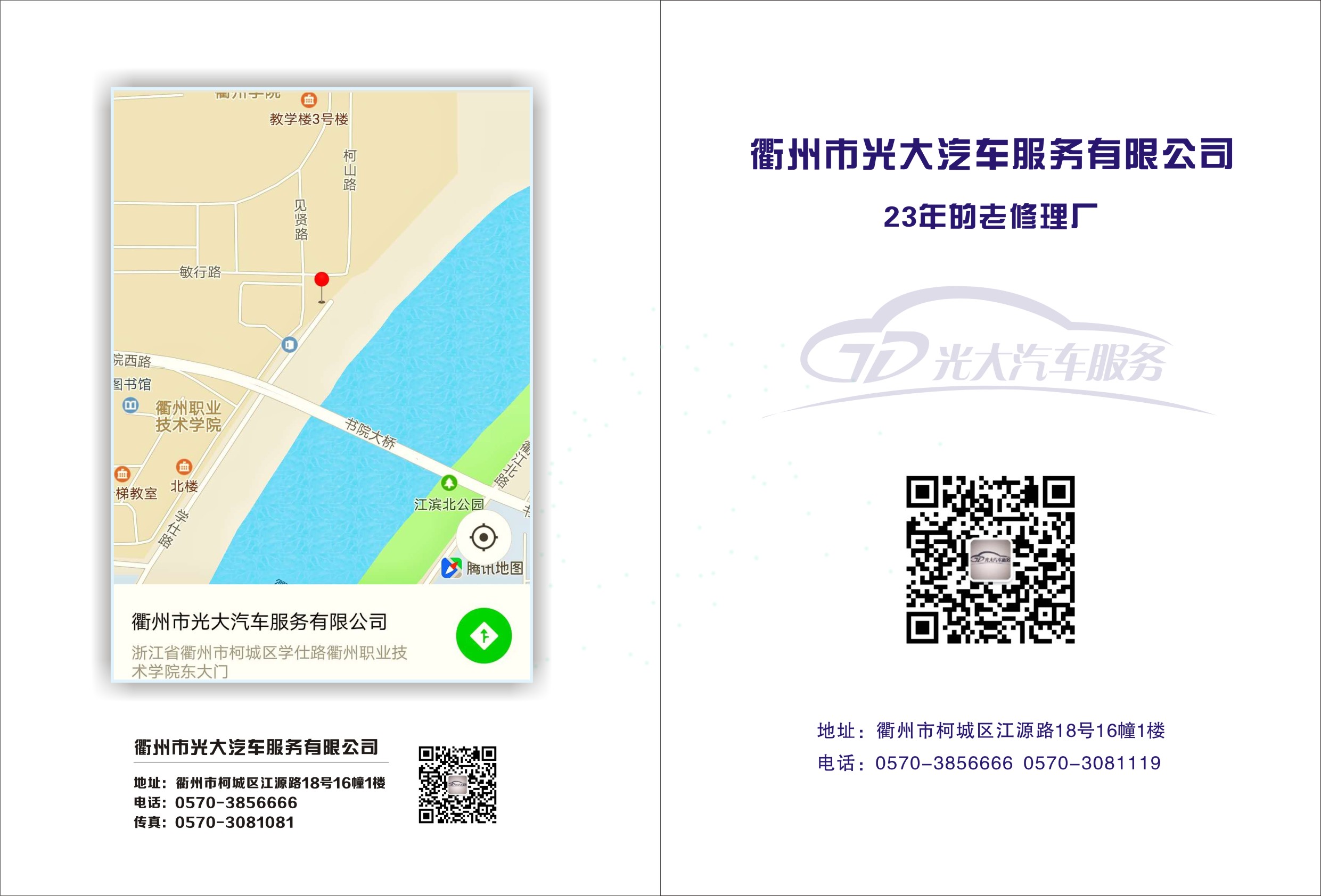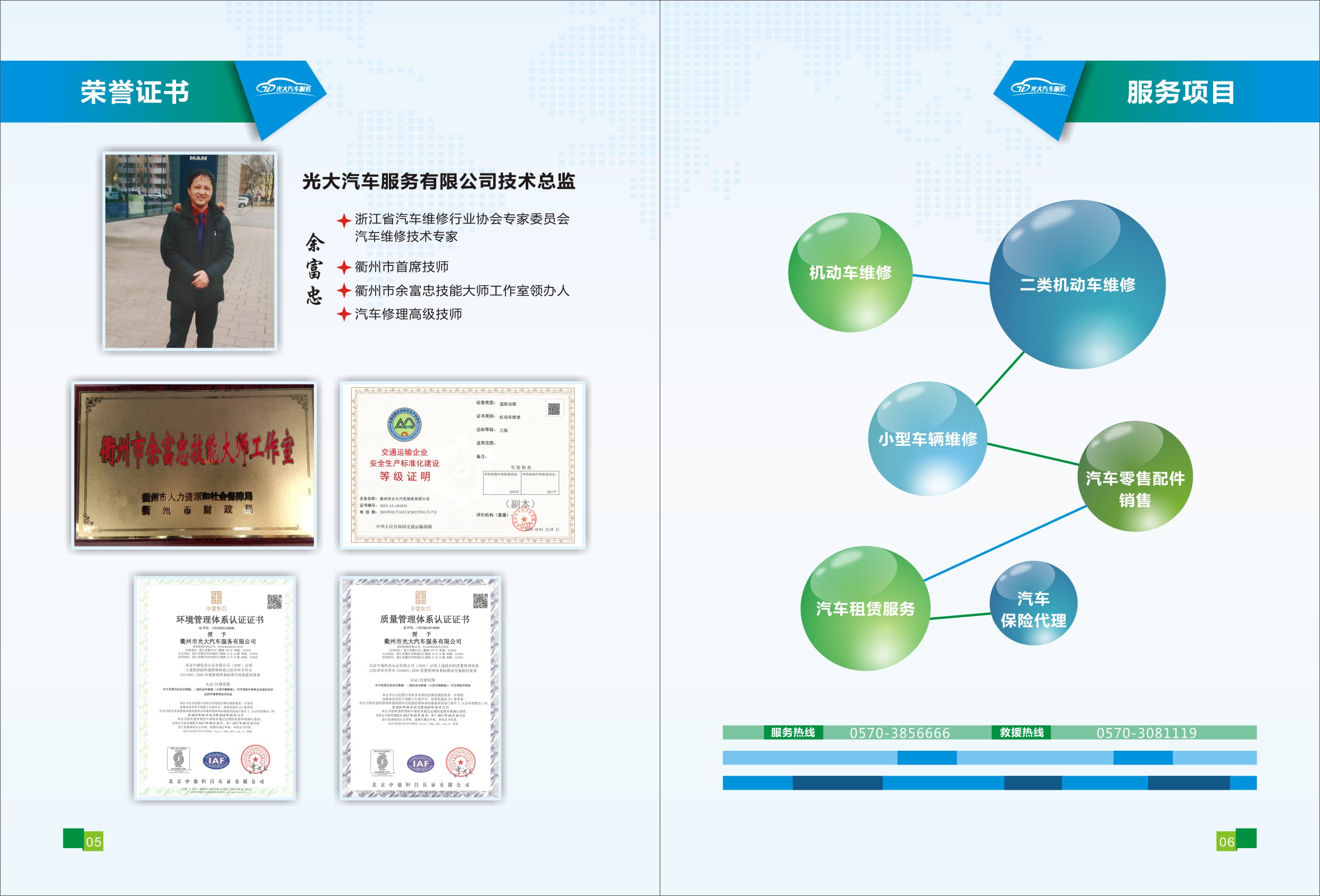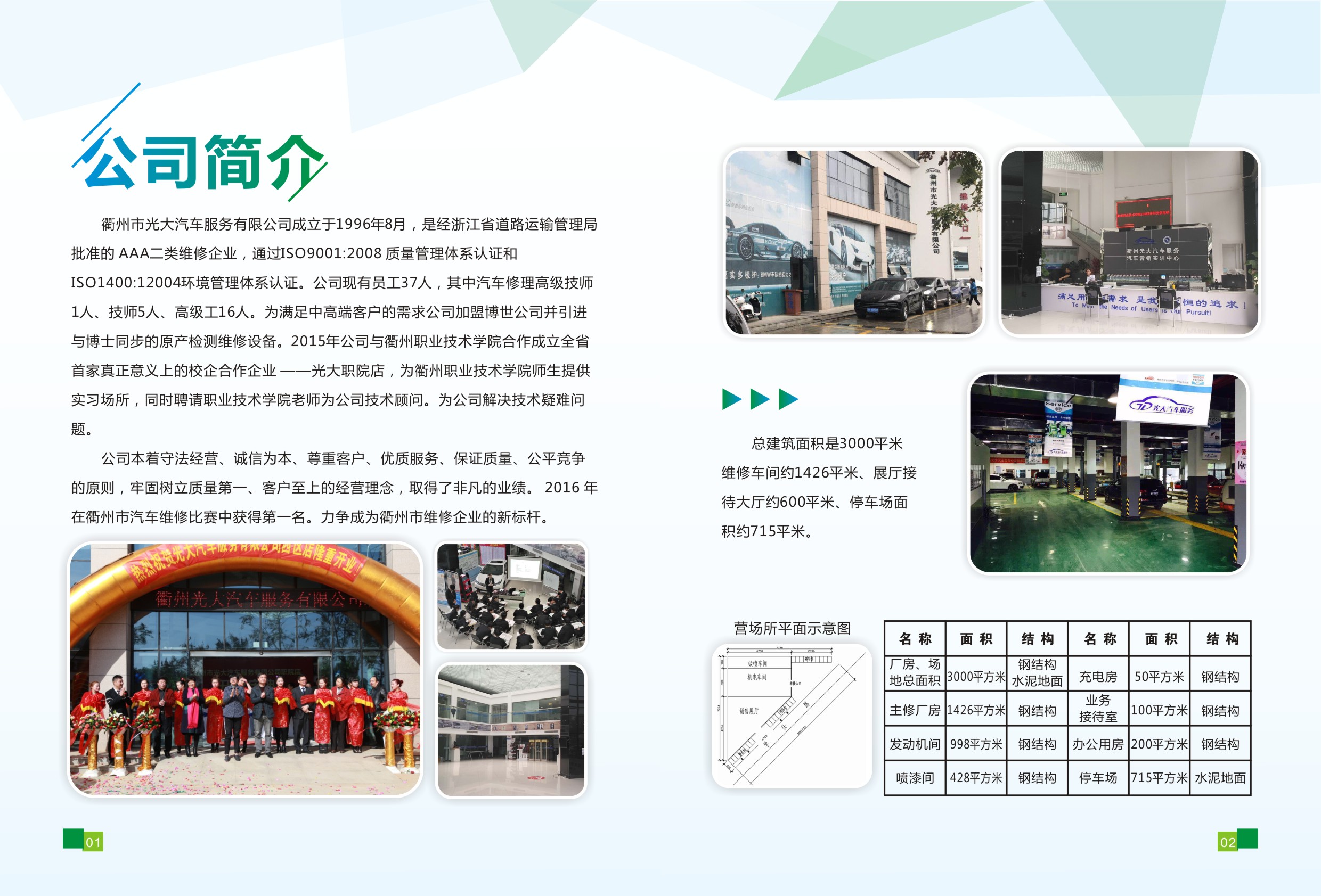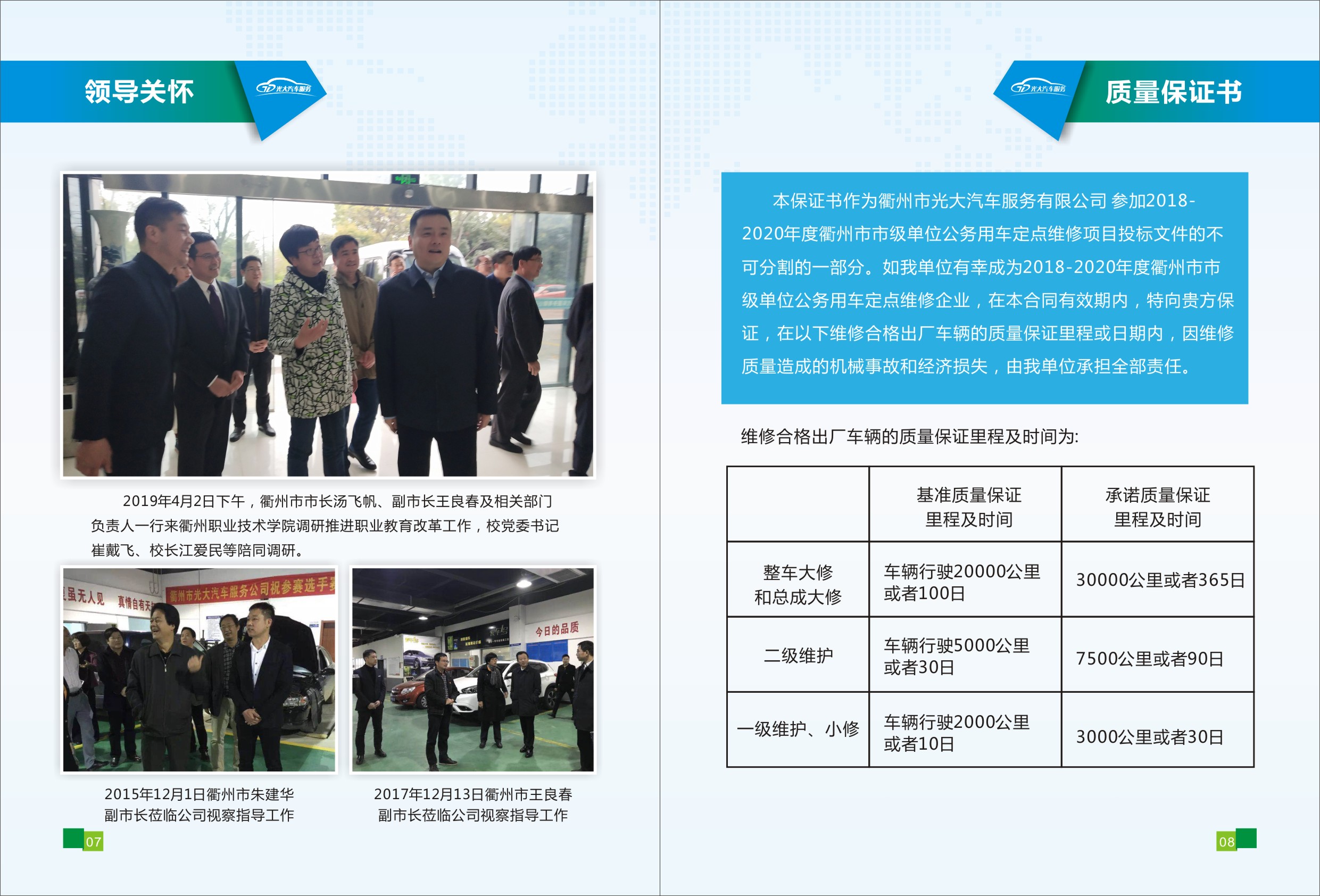 衢州市光大汽车服务有限公司成立于1996年8月,是经浙江省道路运输管理局批准的 AAA二类维修企业,通过ISO9001:2008 质量管理体系认证和ISO1400:12004环境